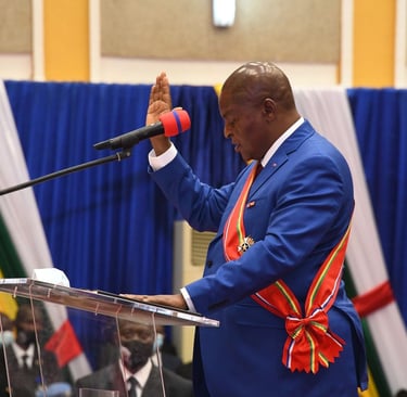 Ca y'est, nous sommes en 7ème République, on ne s'en est pas rendu compte, Touadéra l'a dit hier en jurant sur la Bible. Pourquoi la Bible au fait ? pas le Coran pendant qu'il y est ! C'est pas l’Amérique là ! A part son discours fleuve, et des promesses qui n'engagent que ceux et celles qui y croient, il fera quoi de ses 7 ans à venir, car il aura 75 ans le gros, un 4ème mandat ? au Cameroun à côté ils ont bien un centenaire comme Président, et il vit en Suisse. Organisée dans le complexe sportif Barthélémy-Boganda de Bangui devant près de 20 000 personnes arborant pagnes et t-shirts aux couleurs bleu, jaune et rouge ainsi que des drapeaux et des écharpes à l'effigie du chef de l'État, la cérémonie s'est déroulée en présence de nombreux dirigeants du continent. Parmi eux figuraient plusieurs présidents, comme le Gabonais Brice Clotaire Oligui Nguema, le Comorien Azali Assoumani, le Burundais Évariste Ndayishimiye - qui est également le président en exercice de l'Union africaine -, et le Congolais Denis Sassou Nguesso. Mieux que Bokassa, lui au moins il a une avenue et une statue(aussi grosse que lui). De nombreux défis attendent le nouveau président Il a dit lyrique : « Notre priorité sera de consolider la paix, de promouvoir la justice, de renforcer notre économie, de créer des emplois pour nos jeunes et de proscrire la corruption et les mauvaises manières de servir la nation ». Il a du boulot qui l'attend : Lutte contre le chômage, autosuffisance alimentaire, inclusion des femmes, protection des personnes vulnérables... Les défis qui attendent désormais le premier président de la VIIe République sont nombreux. Et comme dit Denis, un militant du Mouvement cœurs unis (MCU) : « C'est un homme fort, qui a pris le pouvoir en pleine crise en 2016. Depuis, il a fait de bonnes choses pour relever la Centrafrique et je sais qu'il en fera encore de grandes au cours de la VIIe République ». Mais comme conclut Touadéra lui même. « Cela nous permettra de construire des infrastructures – route, chemin de fer, énergie... –, de protéger notre environnement, et surtout de préserver et valoriser nos ressources naturelles ». Le rêve c'est gratuit.